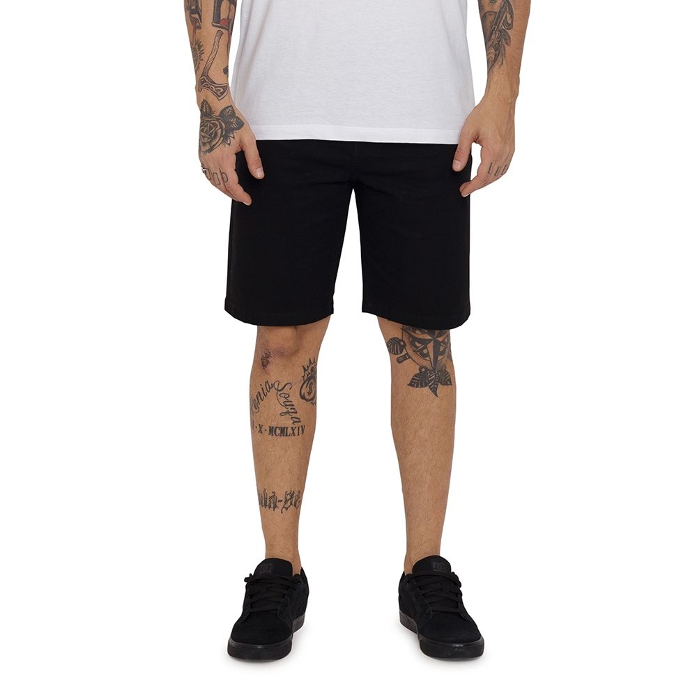 Bermuda DC Shoes com modelagem Straight Fit, five pockets sarja com elastano e regulagem de cadarço no cós.