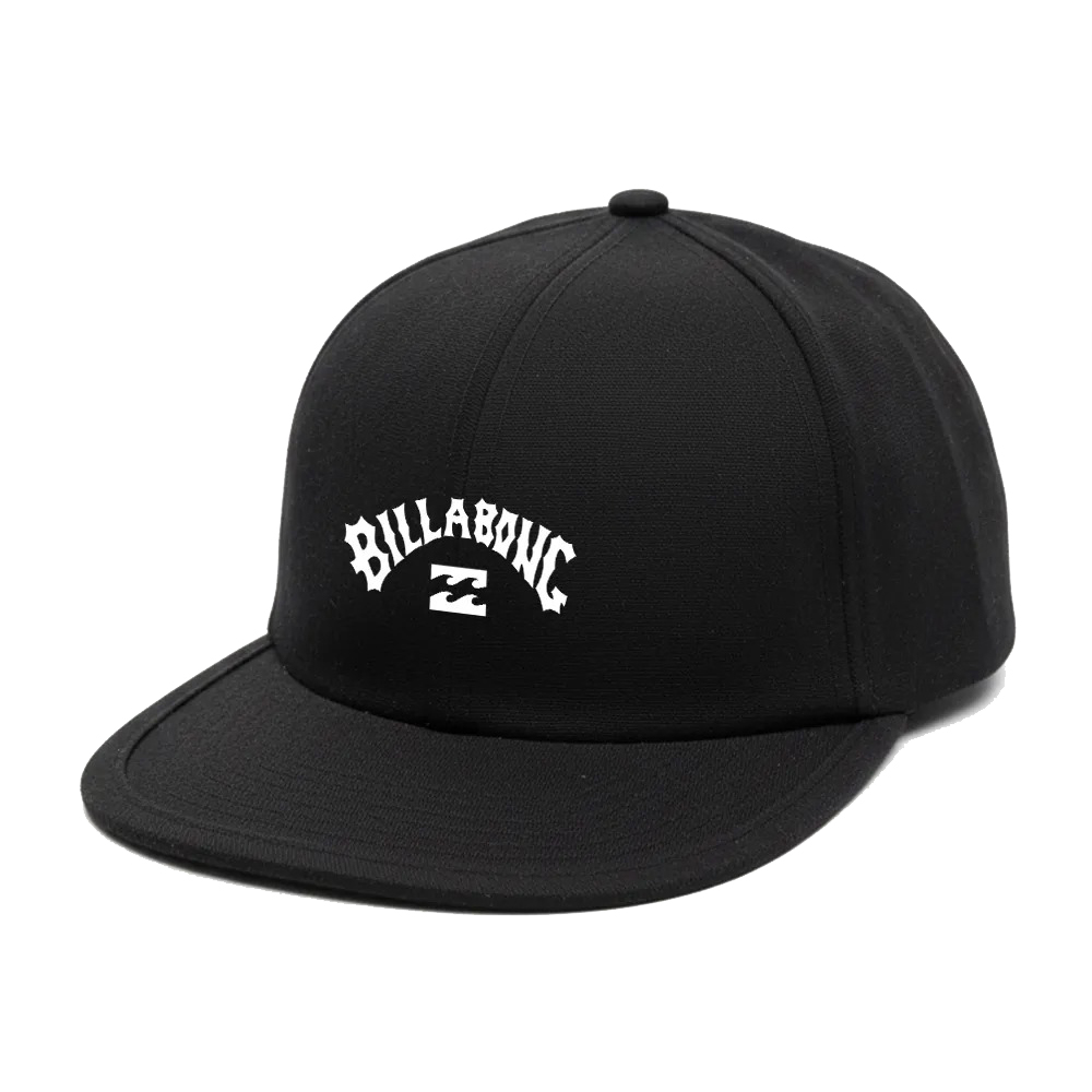 Boné Billabong desestruturado com aba reta de EVA. Possui a logo Arch em relevo no painel frontal, ajuste em snapback de plástico e etiquetas personalizadas.