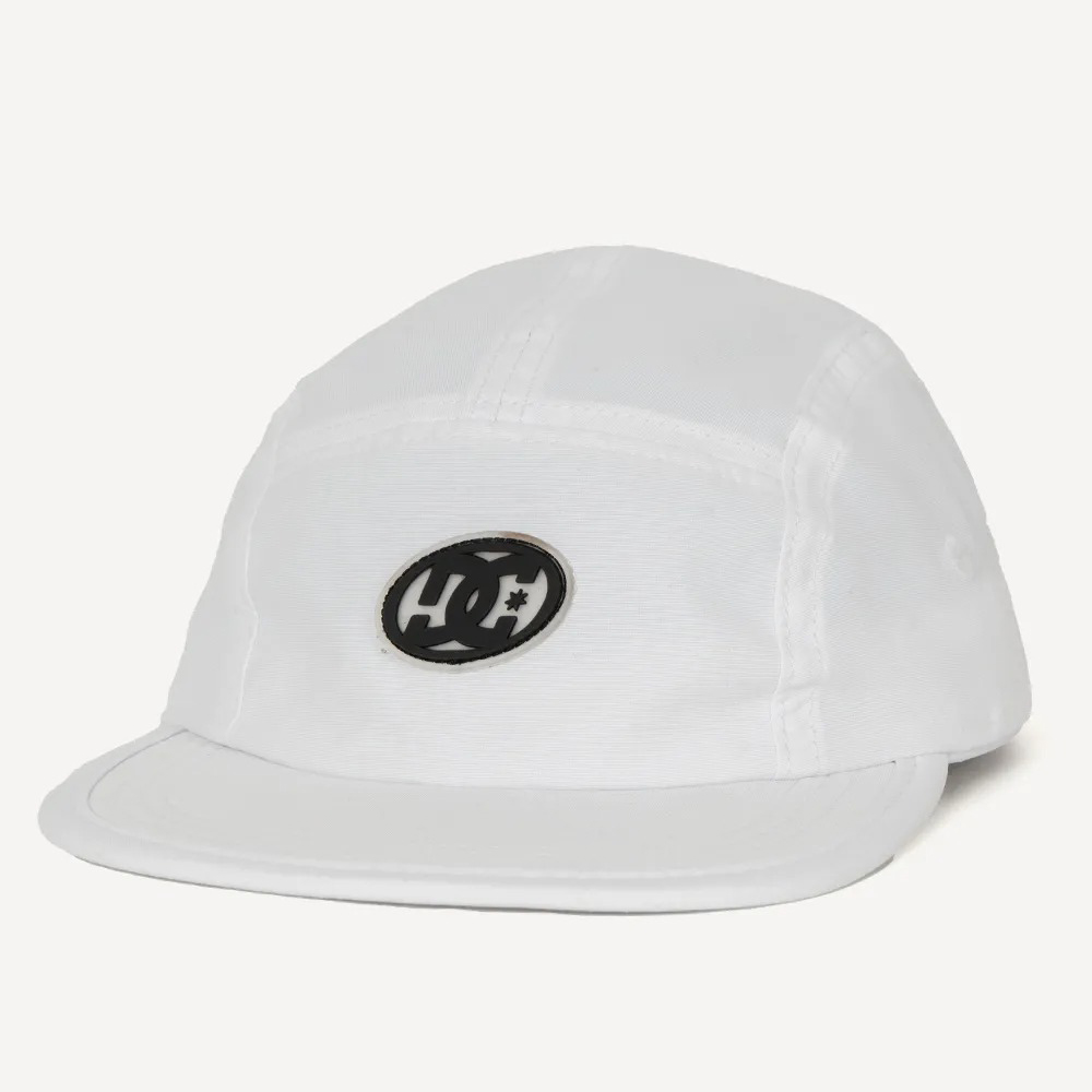 Boné Dc Shoes feito em modelagem five panel, desestruturado, aba reta flexível contrastante, strapback com clip plástico, patch aplicado frontal e tecido tactel de poliamida.