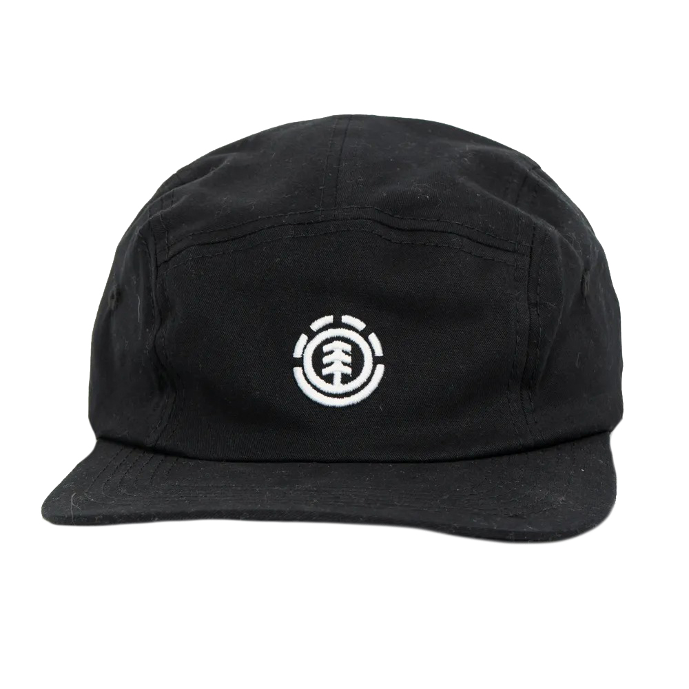 Boné Element feito em modelagem five panel, aba reta flexível com acabamento em viés, bordado frontal e traseiro, strapback com ajustador e etiquetas personalizadas.