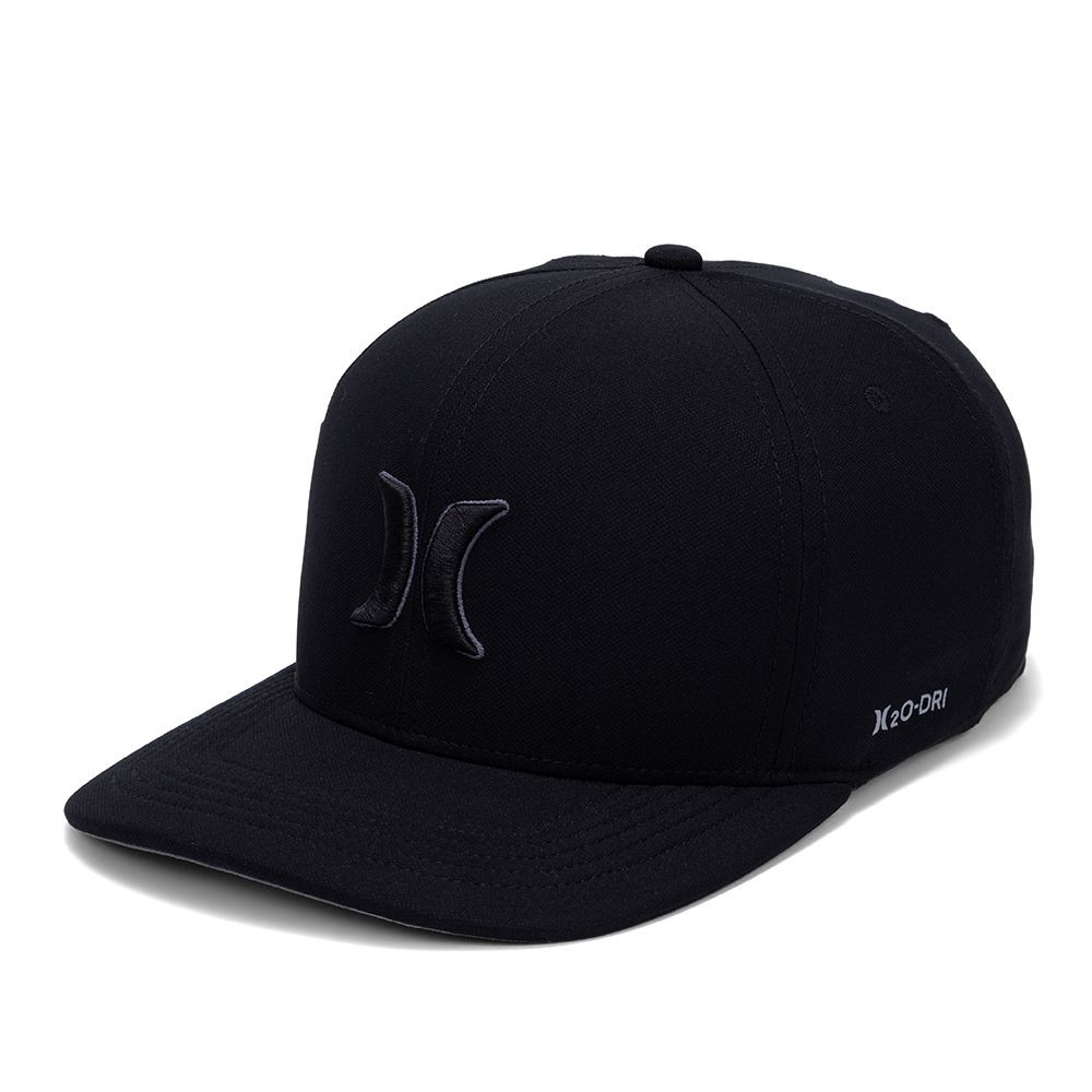 Boné Hurley H20-DRI feito em tecido leve com respirabilidade, bordado ICON 3D, aba inferior contrastante, faixas laterais Block Party, heat transfer lateral refletivo, bordado na parte traseira, regulador traseiro e etiqueta bandeira ONE&ONLY.