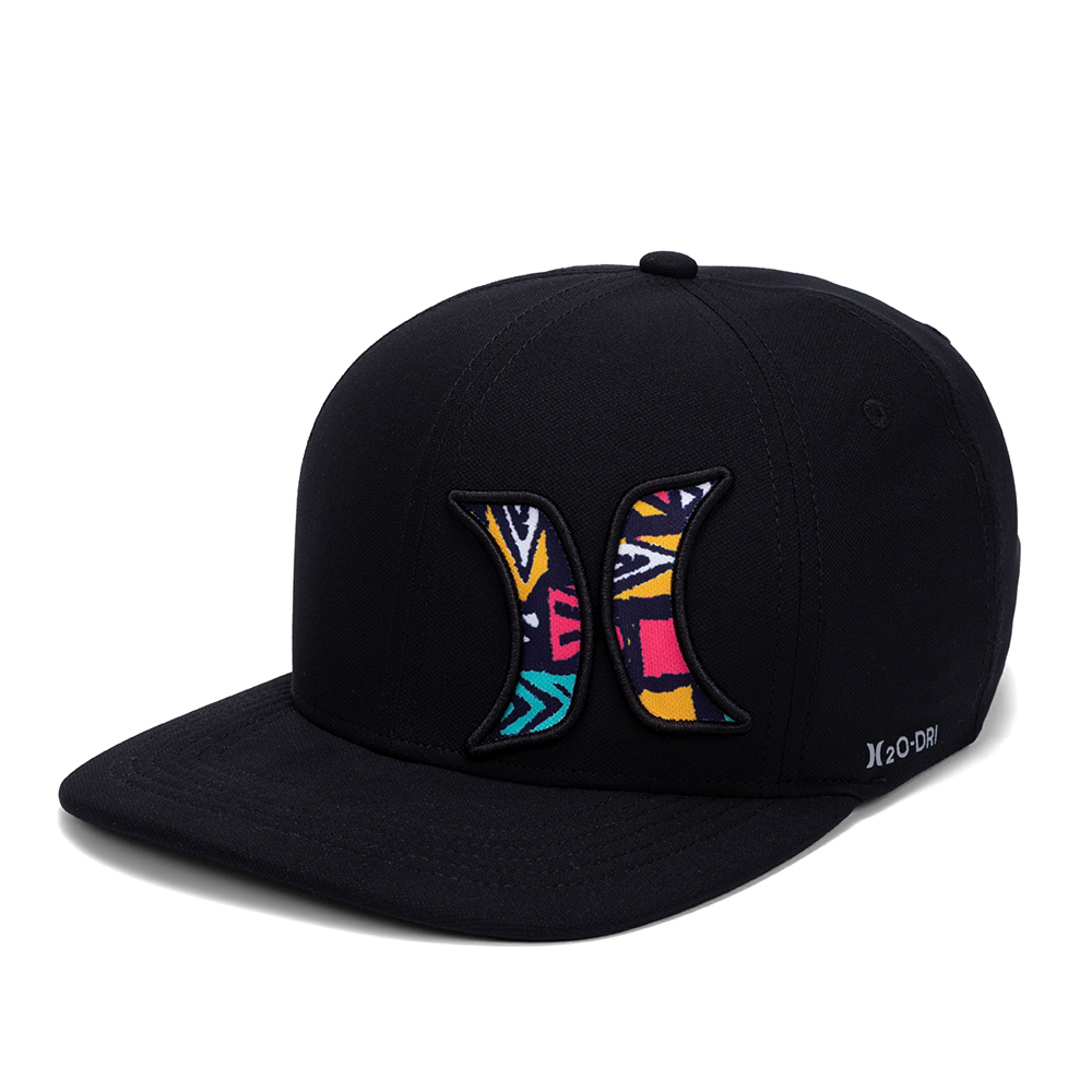 Boné Hurley H20-DRI feito em tecido leve com respirabilidade, bordado OVER ICON 3D sublimado, heat transfer lateral refletivo, regulador traseiro e etiqueta bandeira ONE&ONLY.