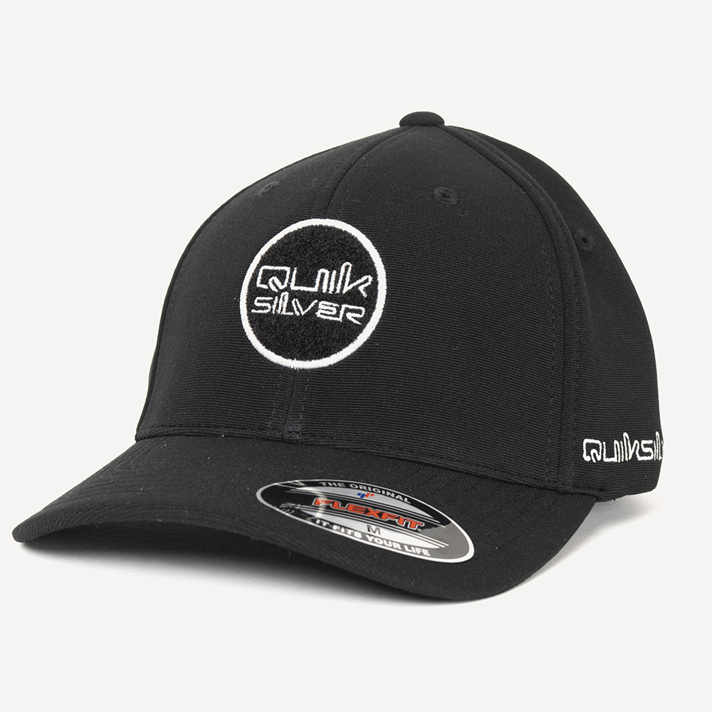Boné QuikSilver 6painel bordado com patch de tiras duplas aderentes e 2 patches adicionais de materal refletivo, bordados nas laterais e etiqueta personalizada na traseira.