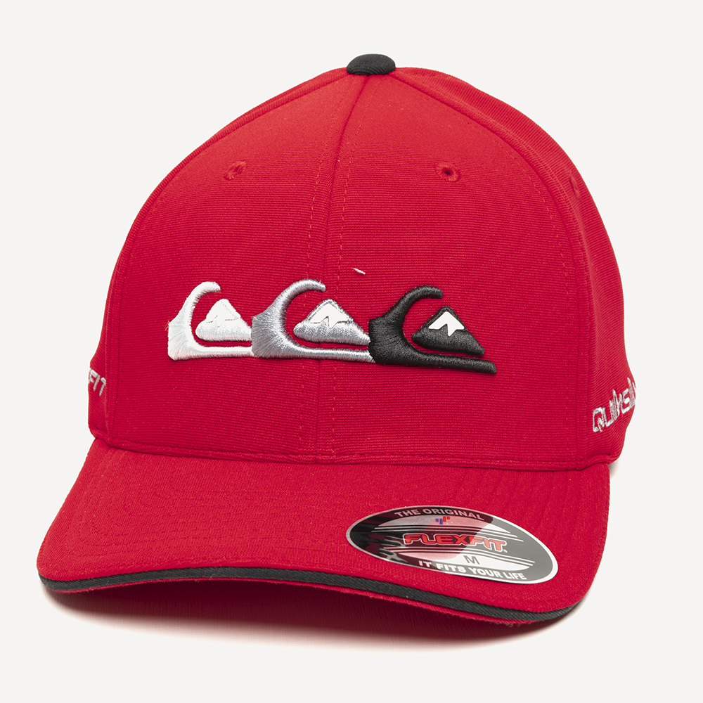 Boné QuikSilver feito em modelagem 6painel Flexfit, faixa anti suor por toda a circunferência interna, bordado 3 logos em degradê com transfer contrastante aplicado no painel frontal, bordado FLEXFIT aplicado ao longo da lateral direita, aplicação de etiqueta na barra traseira e aba interna lisa contrastante.