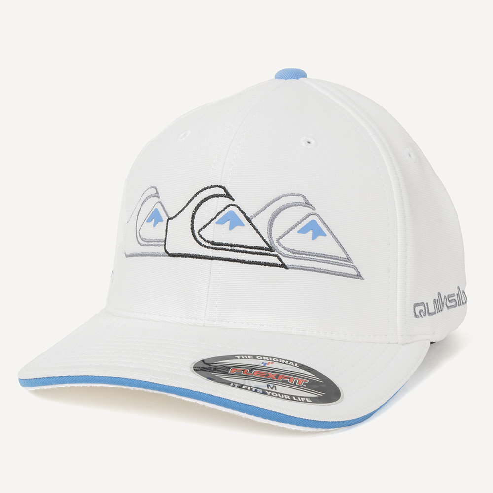 Boné QuikSilver 6 painel com detalhe contrastante na aba, bordado em relevo na frente, bordados nas laterais e etiqueta personalizada nas laterais.
