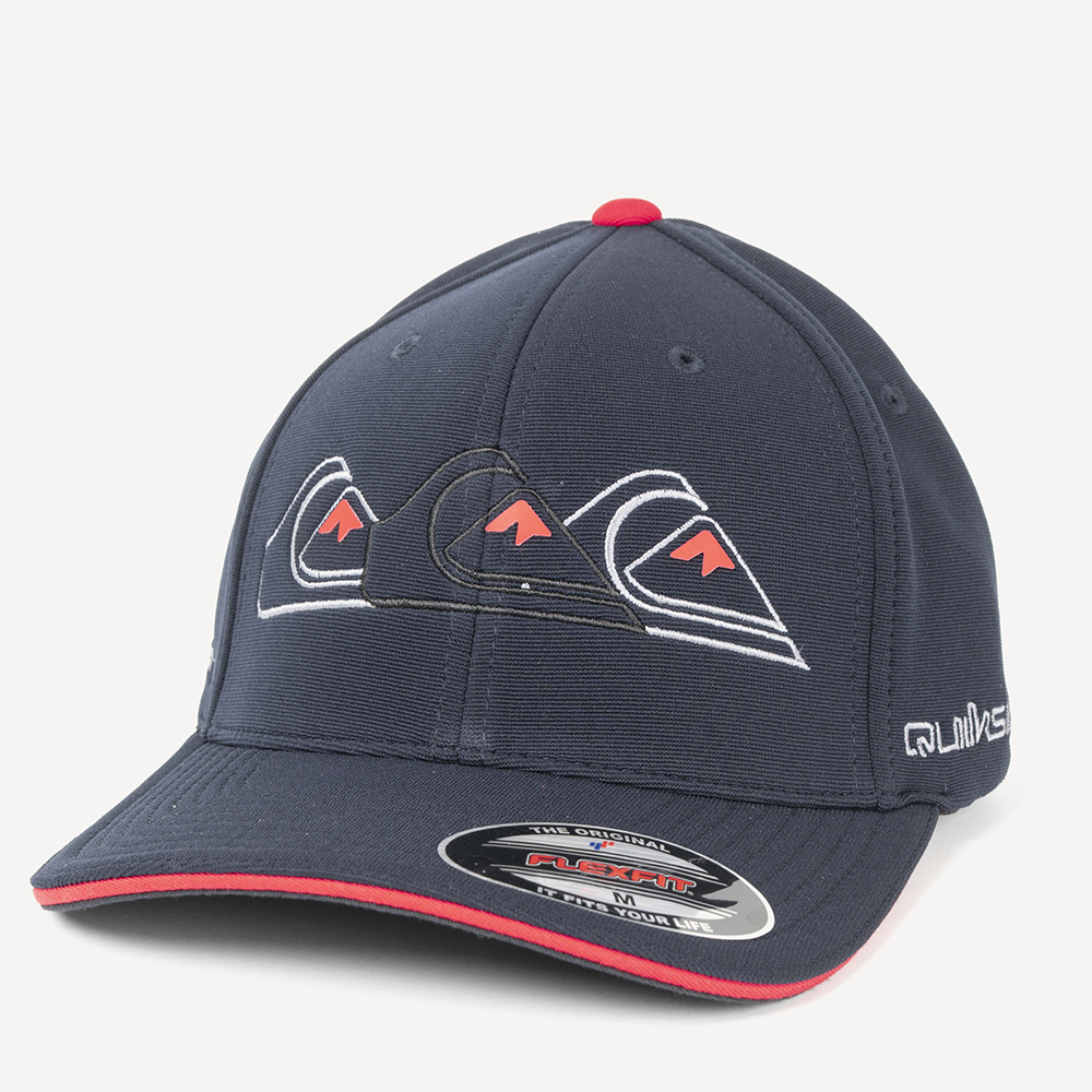 Boné QuikSilver 6 painel com detalhe contrastante na aba, bordado em relevo na frente, bordados nas laterais e etiqueta personalizada nas laterais.