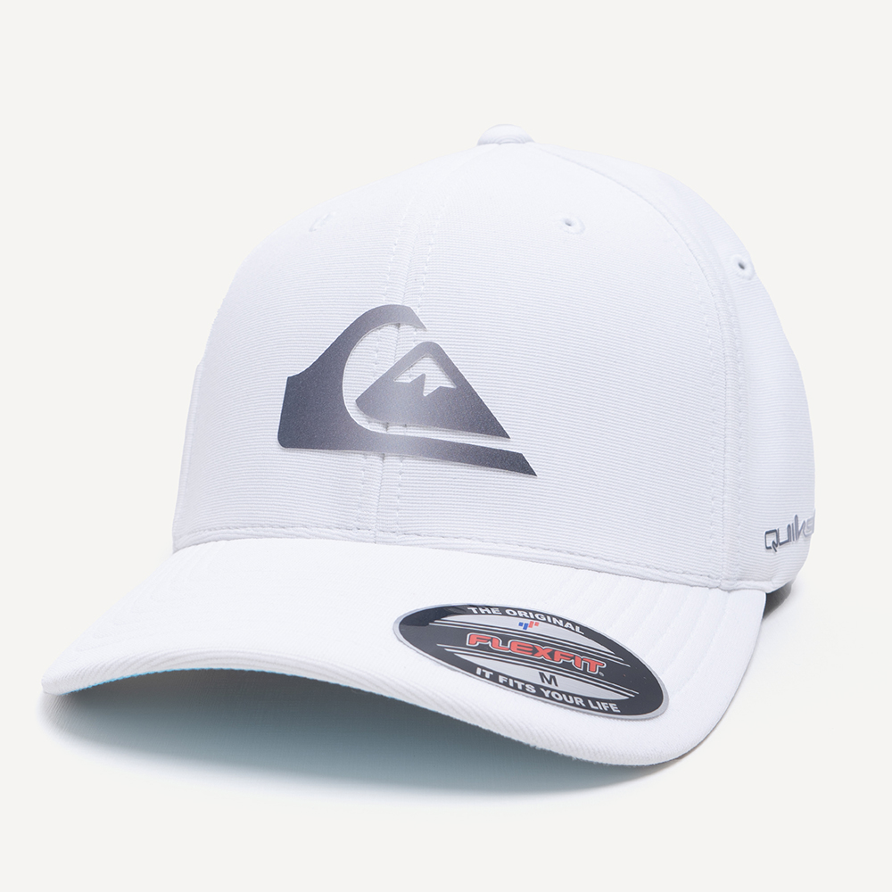 Boné QuikSilver feito em modelagem 6painel Flexfit, faixa anti suor por toda a circunferência interna, transfer refletivo logo sublimada centralizado no painel frontal, aba interna sublimada, trasnfer refletivo assinatura aplicado ao longo da lateral esquerda, bordado FLEXFIT aplicado ao longo da lateral direita e etiqueta localizada na barra traseira.