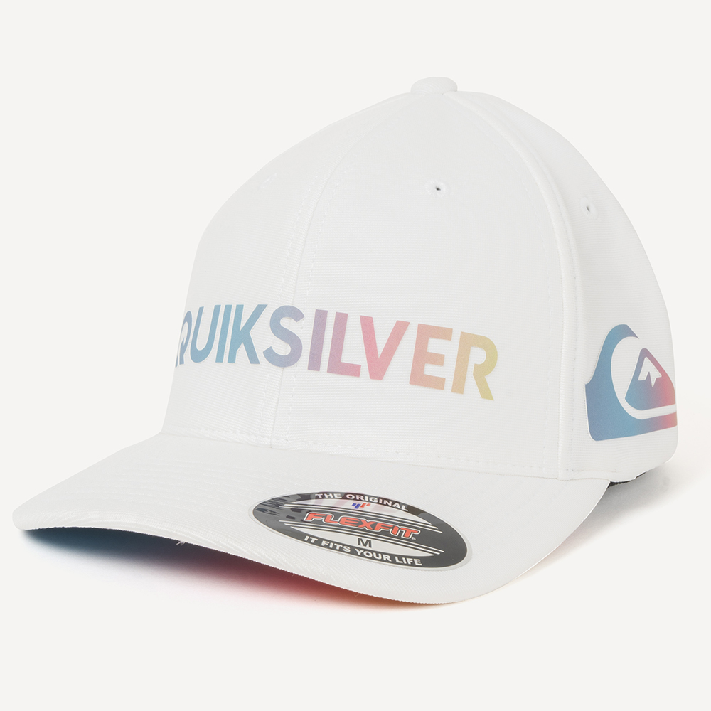 Boné QuikSilver 6painel, estampa refletiva em relevo na frente e na lateral e etiqueta personalizada aplicada na traseira.