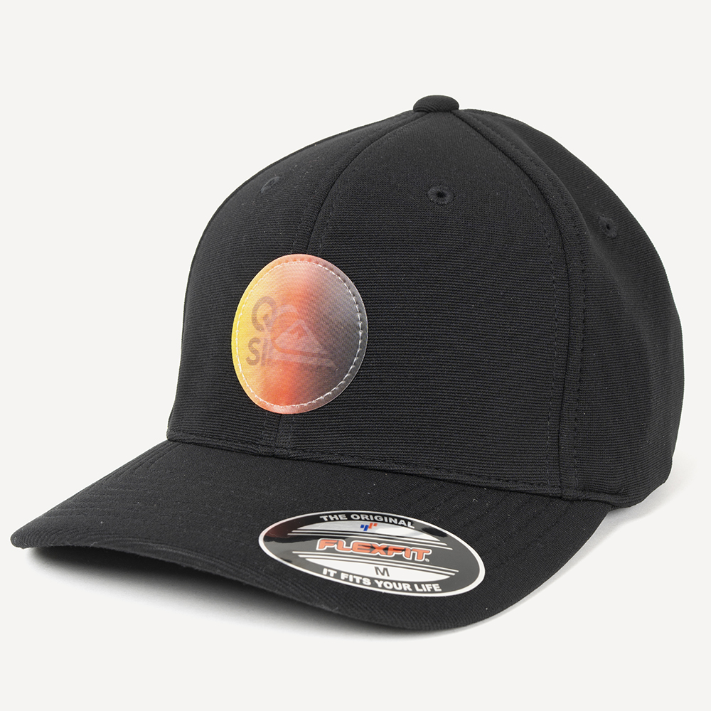 Boné QuikSilver 6painel com patch holográfico, bordado nas laterais e etiqueta personalizada na traseira.