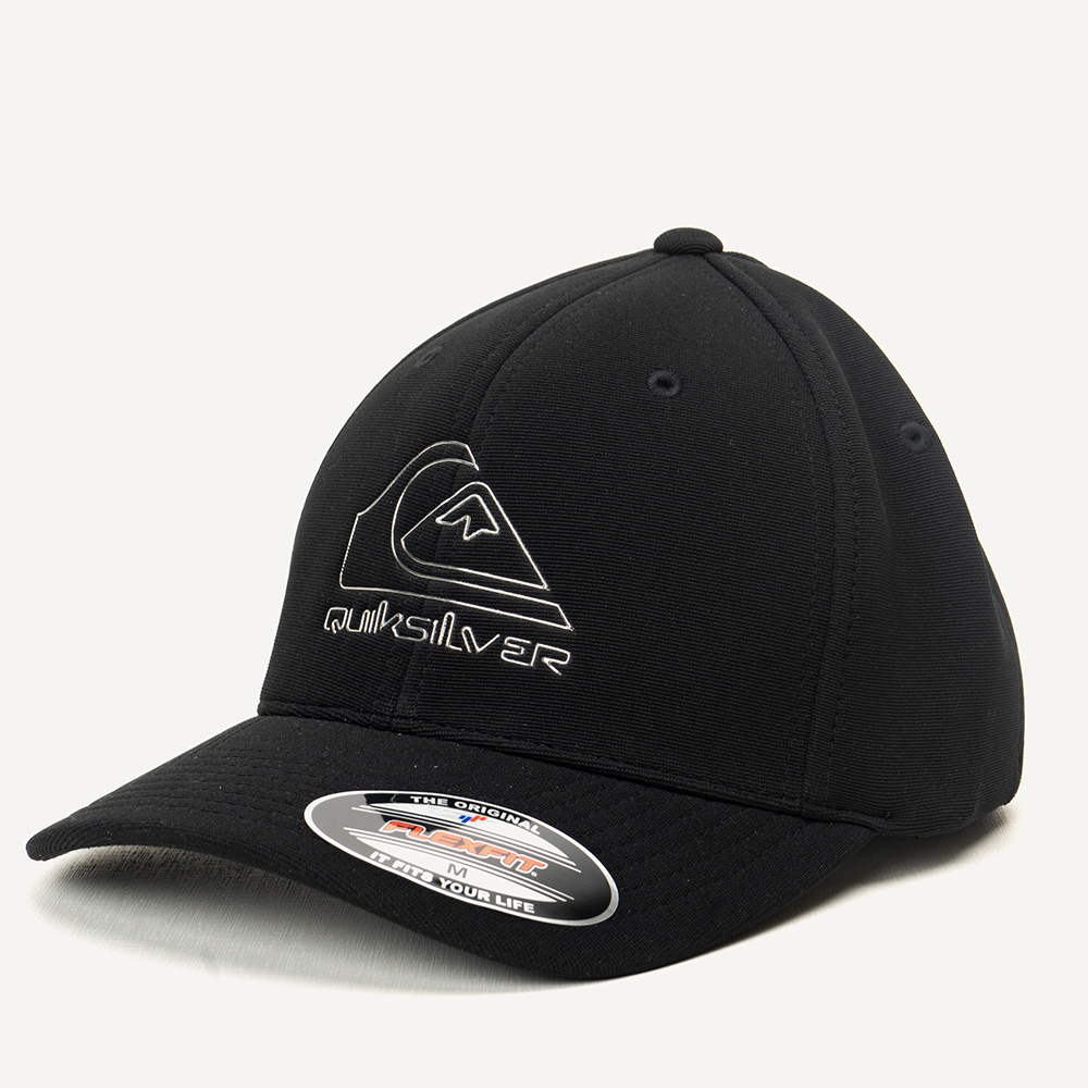 Boné QuikSilver feito em modelagem 6painel Flexfit, faixa anti suor por toda a circunferência interna, assinatura cromada soldada centralizada no painel frontal, aba interna lisa, bordado FLEXFIT aplicado ao longo da lateral direita e etiqueta localizada na barra traseira.