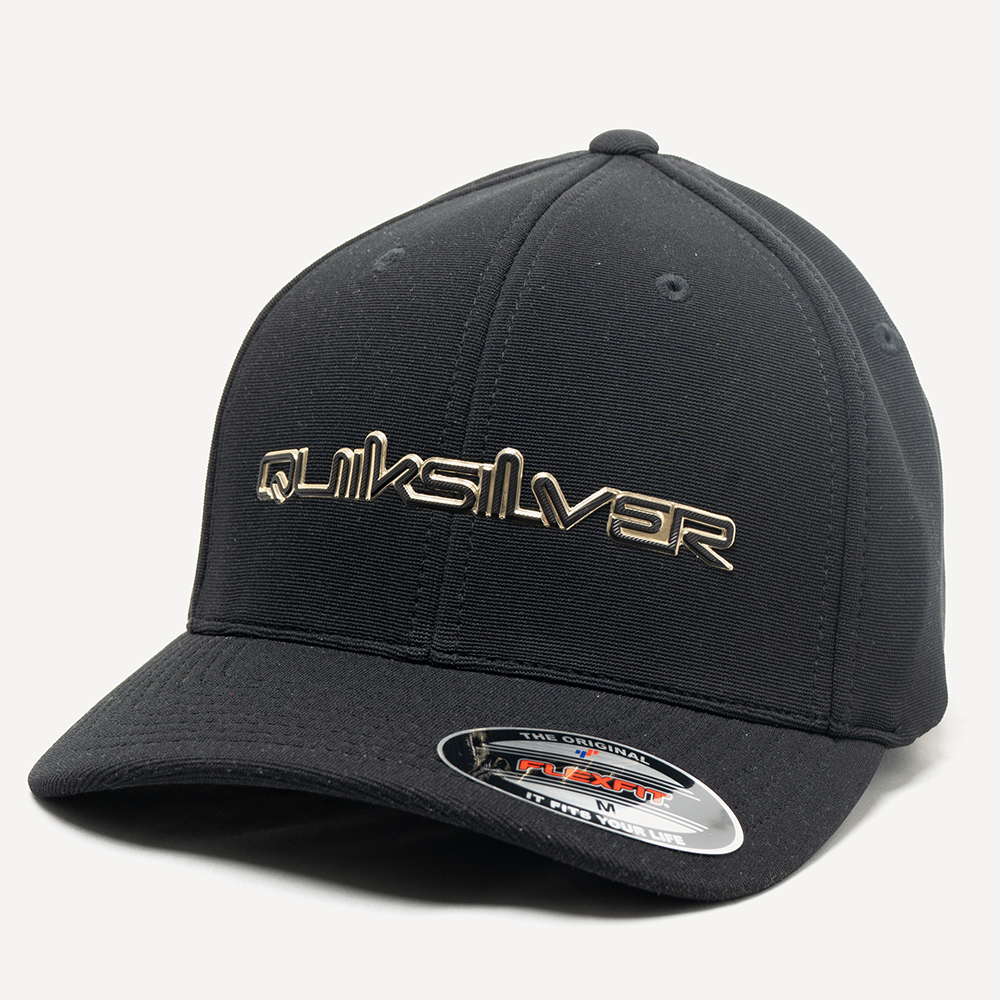 Boné QuikSilver feito em modelagem 6painel Flexfit, faixa anti suor por toda a circunferência interna, assinatura contornada em uretano dourado solado centralizado no painel frontal, aba interna lisa, bordado FLEXFIT aplicado ao longo da lateral direita e etiqueta localizada na barra traseira.
