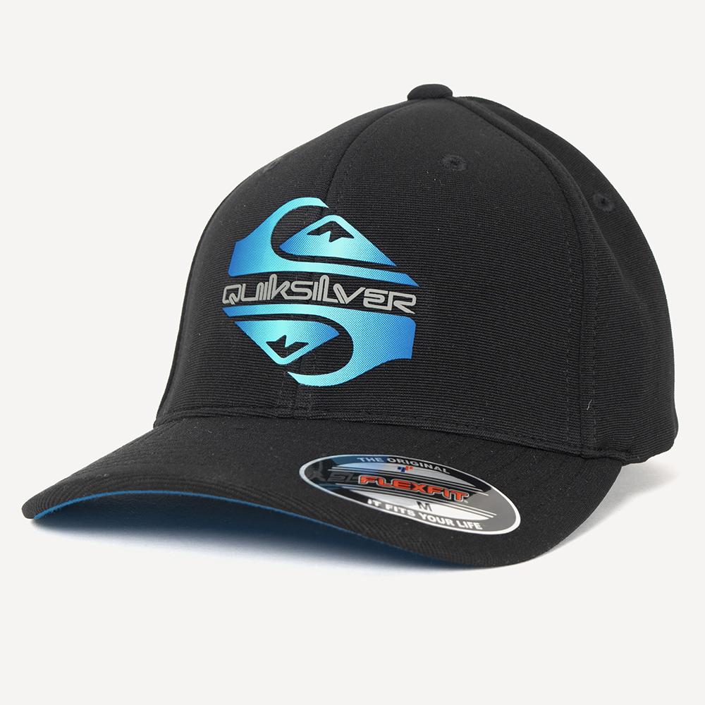 Boné QuikSilver 6painel com parte interna da aba colorida, estampa degrade em relevo na frente, bordado na lateral e etiqueta personalizada na traseira.
