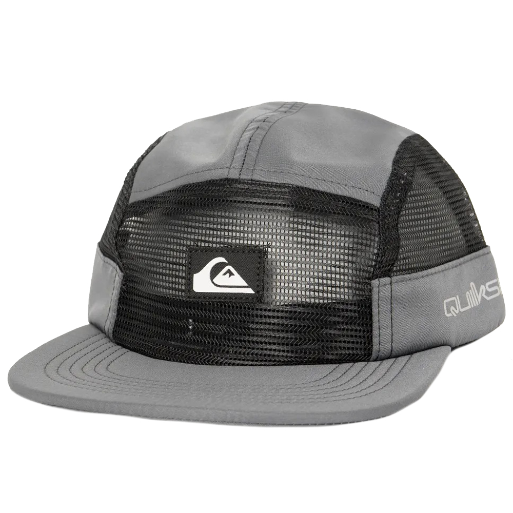 Boné QuikSilver feito em modelagem 5 panel, com detalhes em tela e silk em uma lateral e etiqueta centralizada na frente.