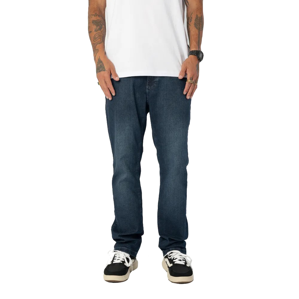 Calça Mcd feita em modelagem slim, botão flexível + passantes, bolso relógio + rebite chupeta, bolso rebatido + rebite caveira, bolsos traseiros, etiqueta de couro MCD aplicada no cós, etiqueta bandeira espada embutida na lateral do bolso, zíper de metal + viés de acabamento interno e tag personalizado MCD.