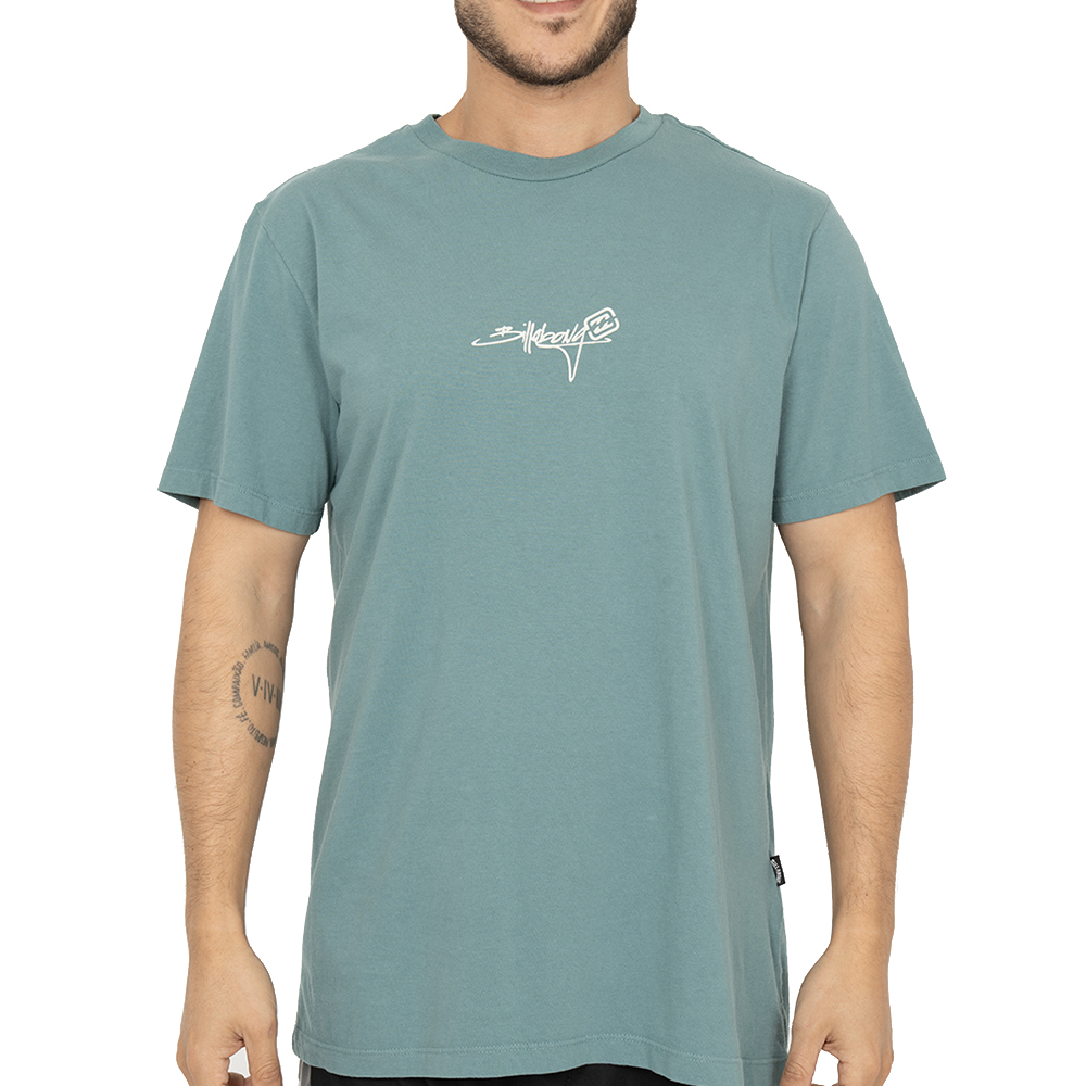 Camiseta Billabong feita em modelagem Core fit, meia malha, estampa aplicada na frente e centro costas e etiqueta da marca aplicada na lateral do lado esquerdo de quem veste.