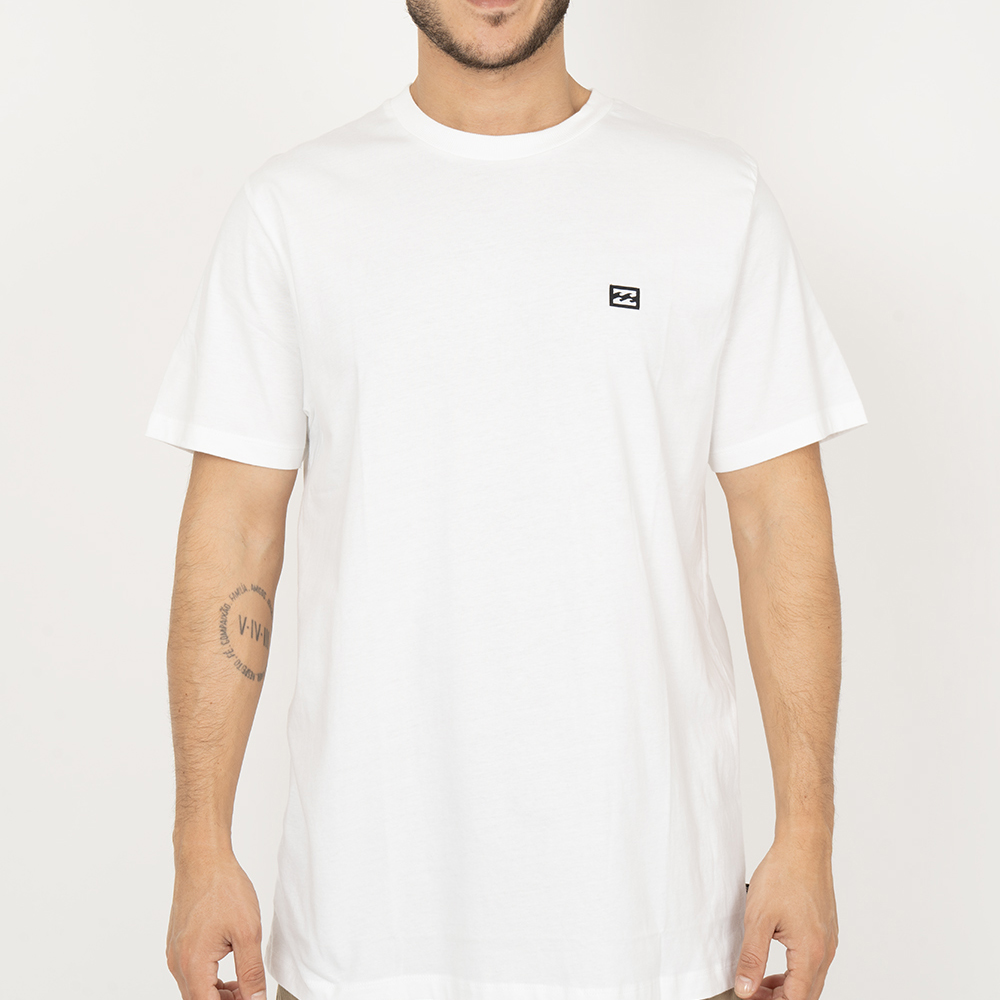 Camiseta Billabong feita em modelagem Core fit, meia malha de algodão, etiqueta personalizada aplicada no peito e na lateral.