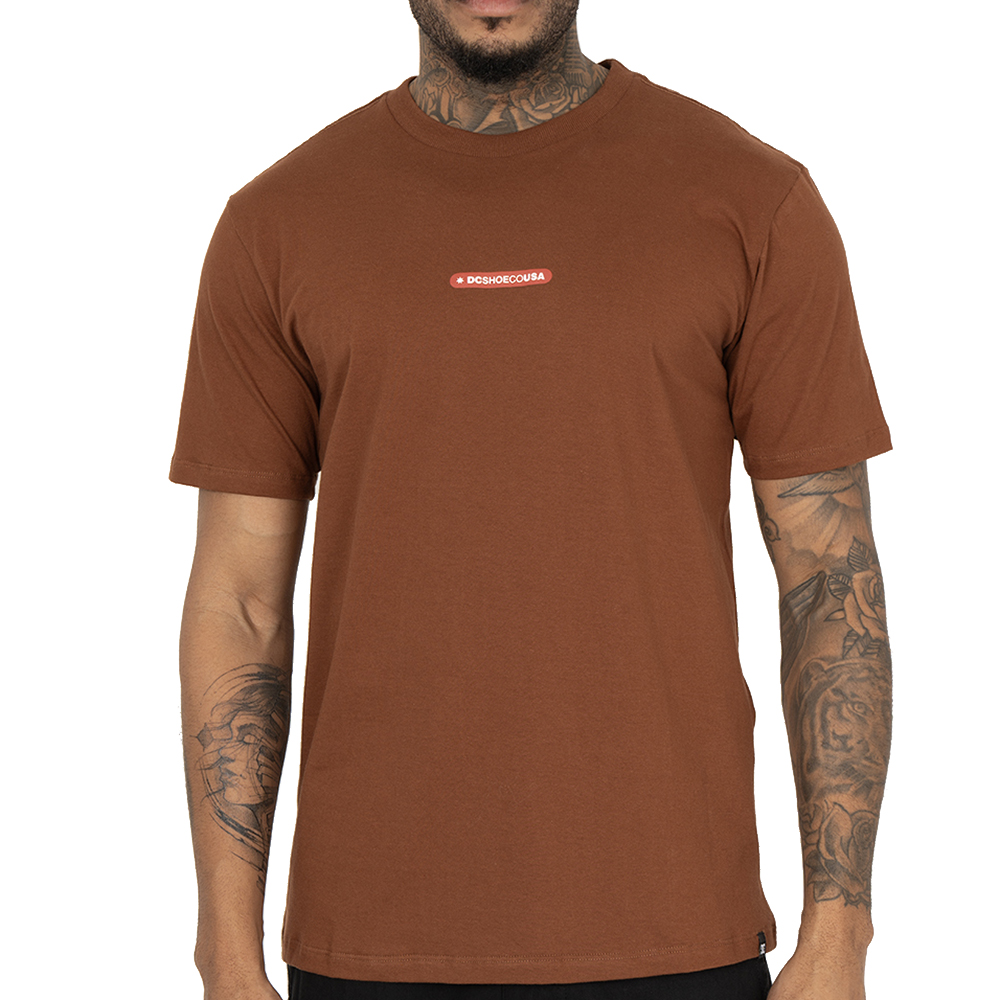 Camiseta Dc Shoes feita em modelagem regular, meia malha 30.1, estampa frontal e etiquetas personalizadas.