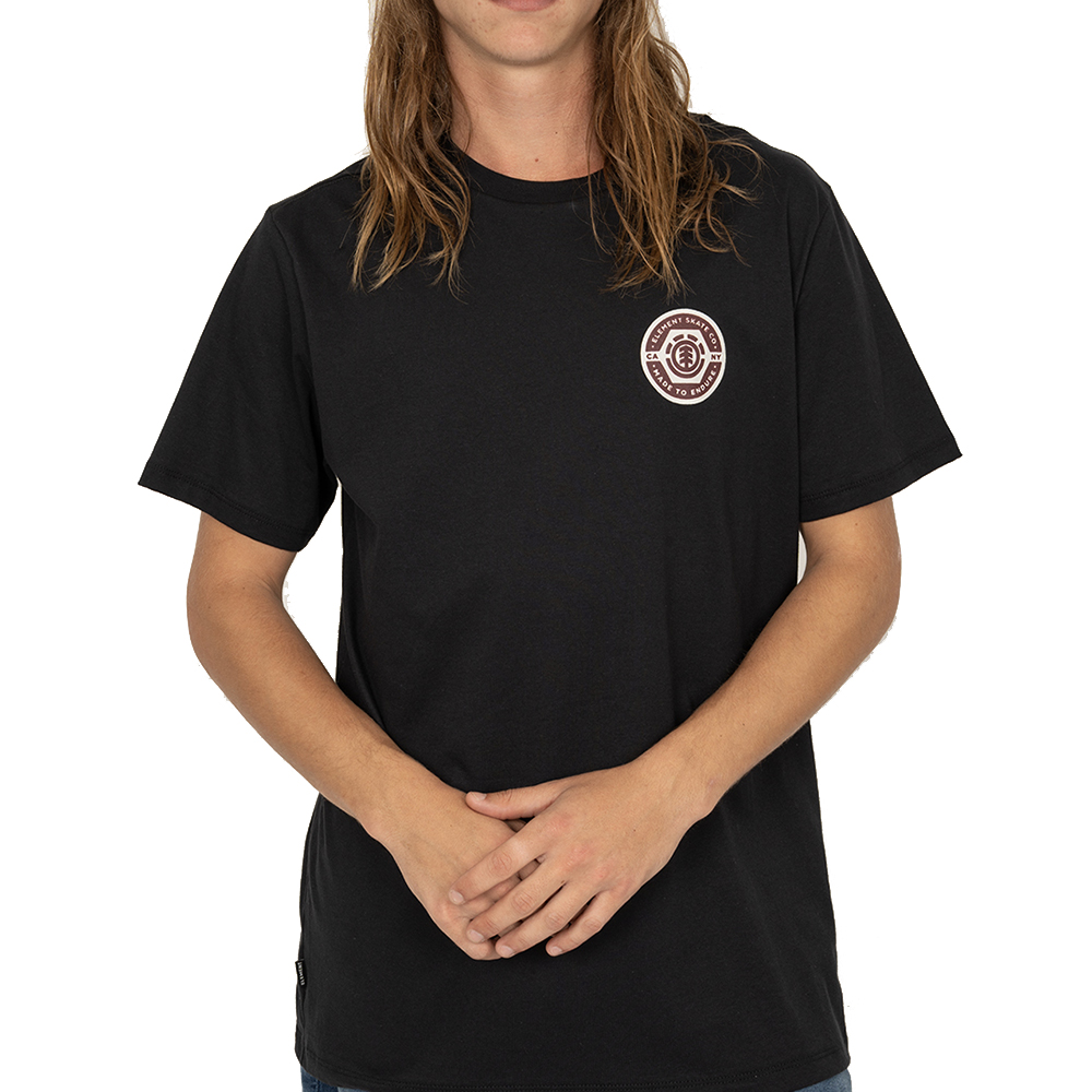 Camiseta Element feita em modelagem regular, estampa na frente e etiqueta personalizada Element.