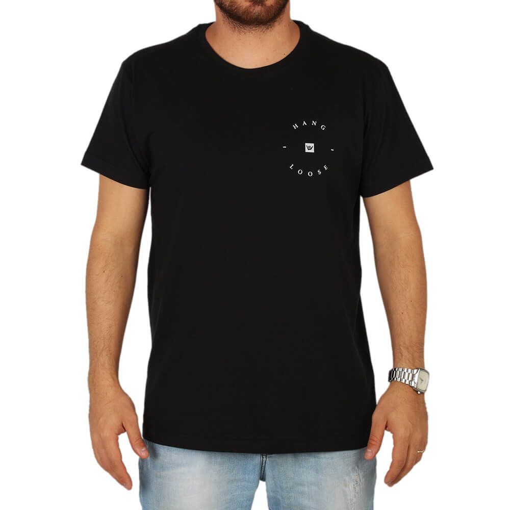 Camiseta Hang Loose meia malha, manga curta e com logo da marca na frente.