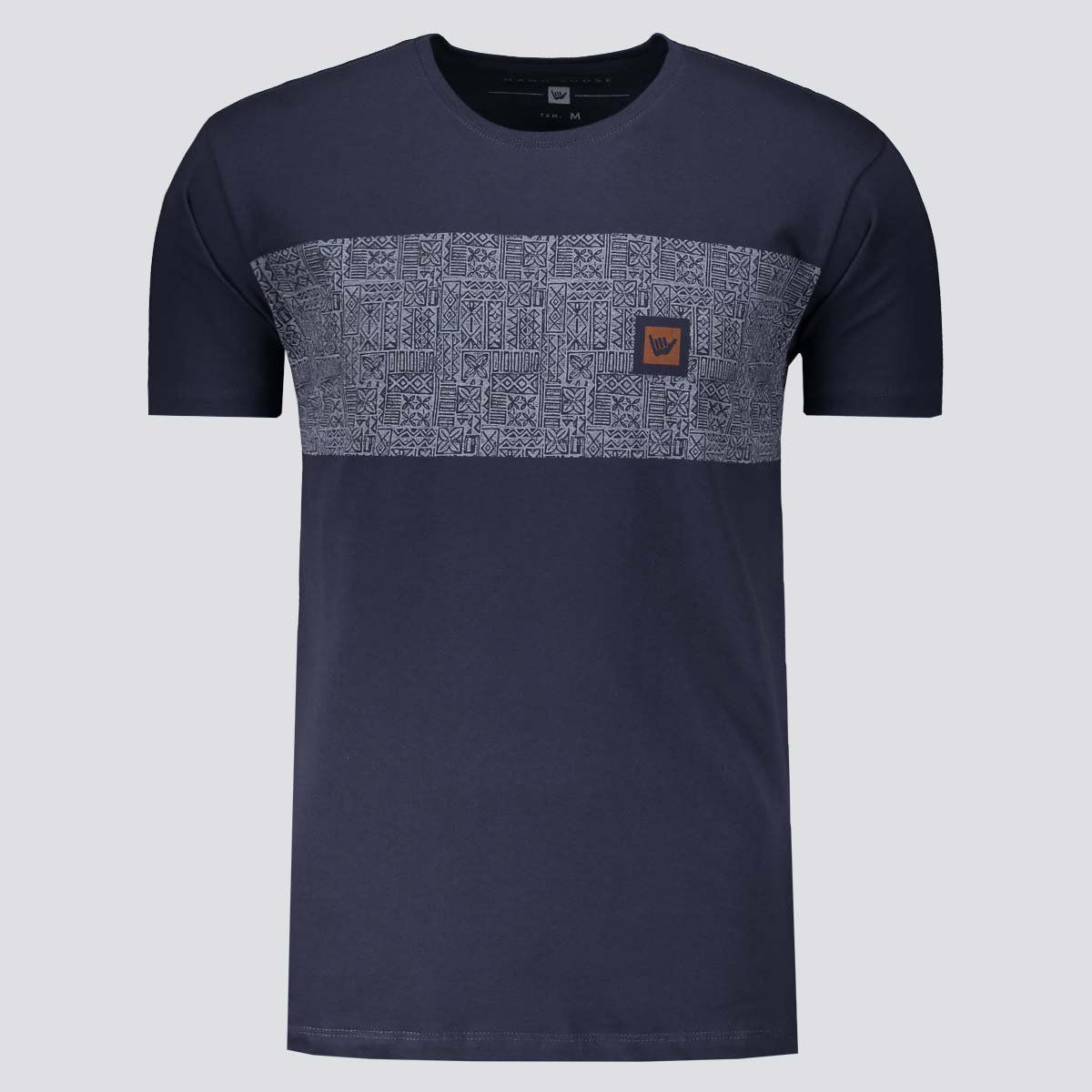 Camiseta Hang Loose meia malha, manga curta e com logo da marca na frente.