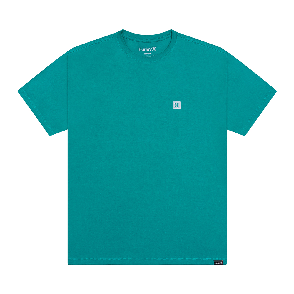 Camiseta Hurley feita em modelagem meia malha 30.1, gola rebatida, estampa localizada base d'agua e etiqueta clips ONE&ONLY na barra.