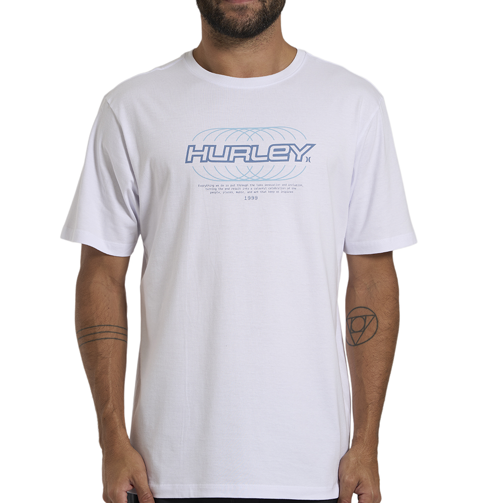 Camiseta Hurley com gola rebatida, estampa localizada base d'água, etiqueta clips ONE&ONLY na barra e etiquetas personalizadas.