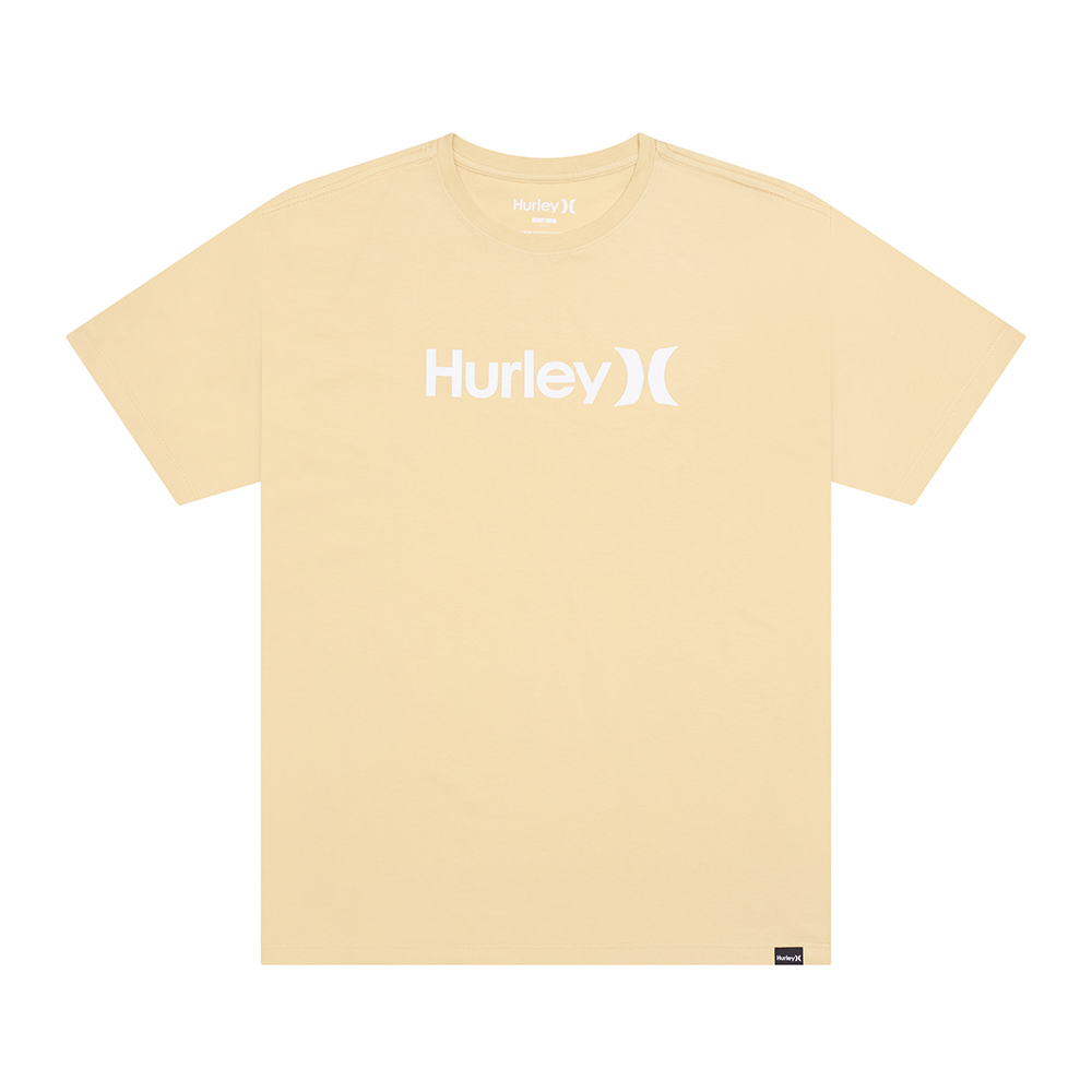 Camiseta Hurley feita em meia malha 30.1, gola rebatida, estampa localizada base d'agua e etiqueta clips ONE&ONLY na barra.
