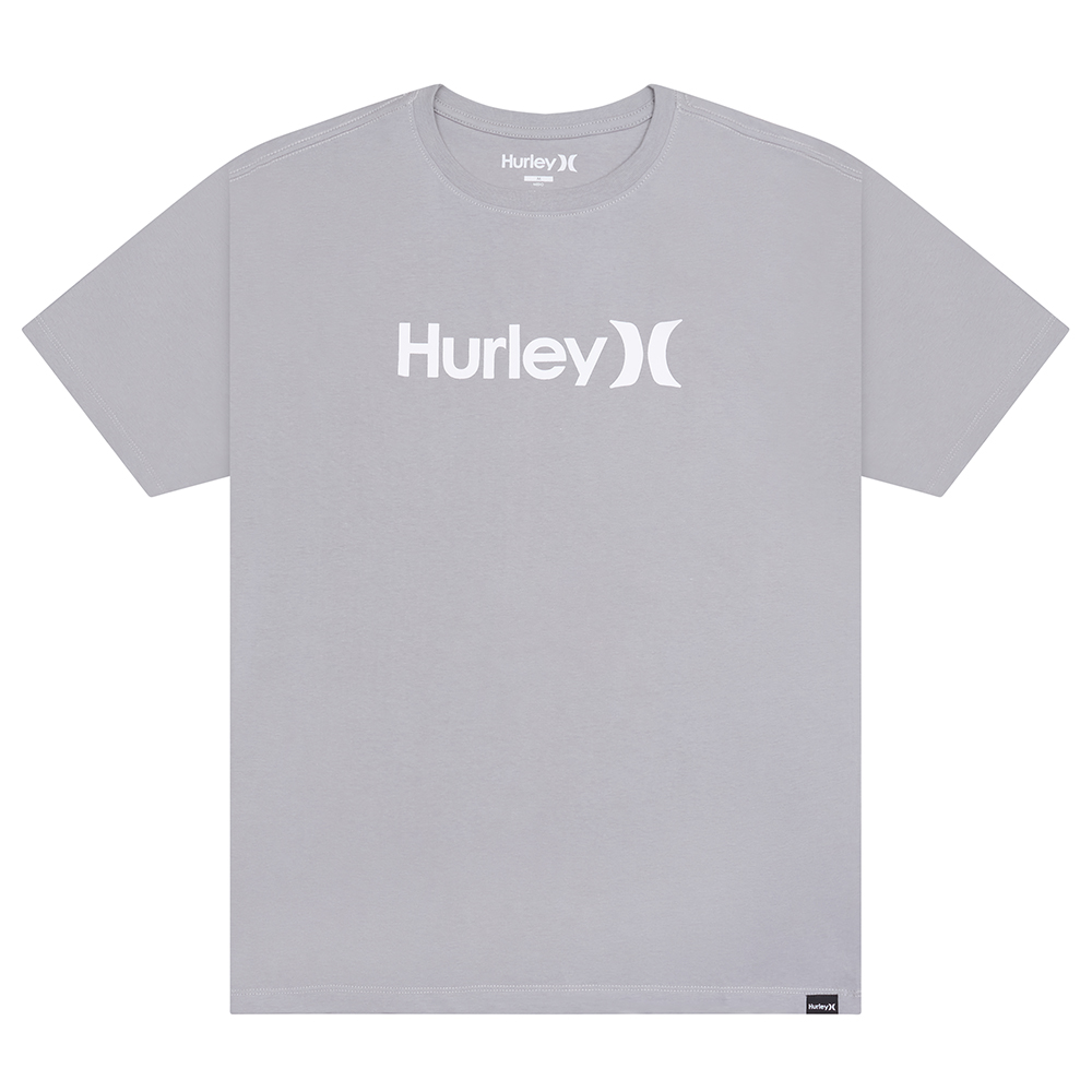 Camiseta Hurley feita em meia malha 30.1, gola rebatida, estampa localizada base d'agua e etiqueta clips ONE&ONLY na barra.