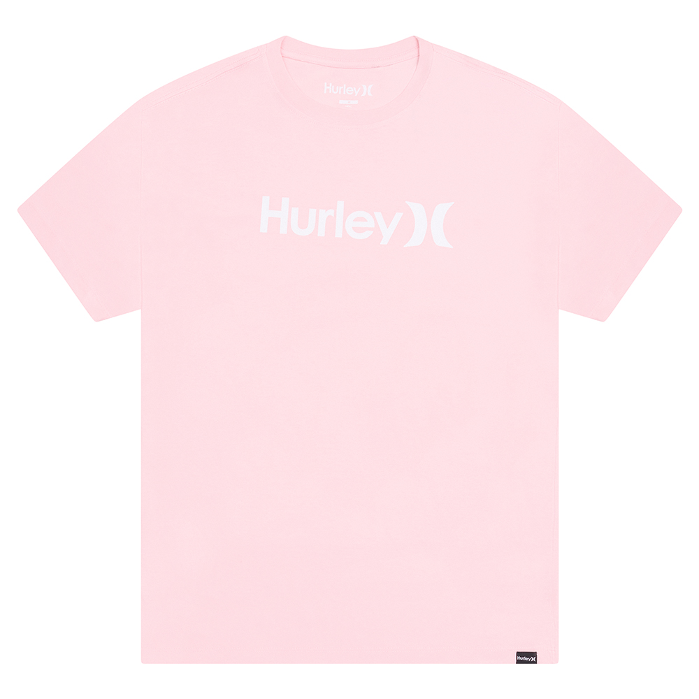 Camiseta Hurley feita em meia malha 30.1, gola rebatida, estampa localizada base d'agua e etiqueta clips ONE&ONLY na barra.