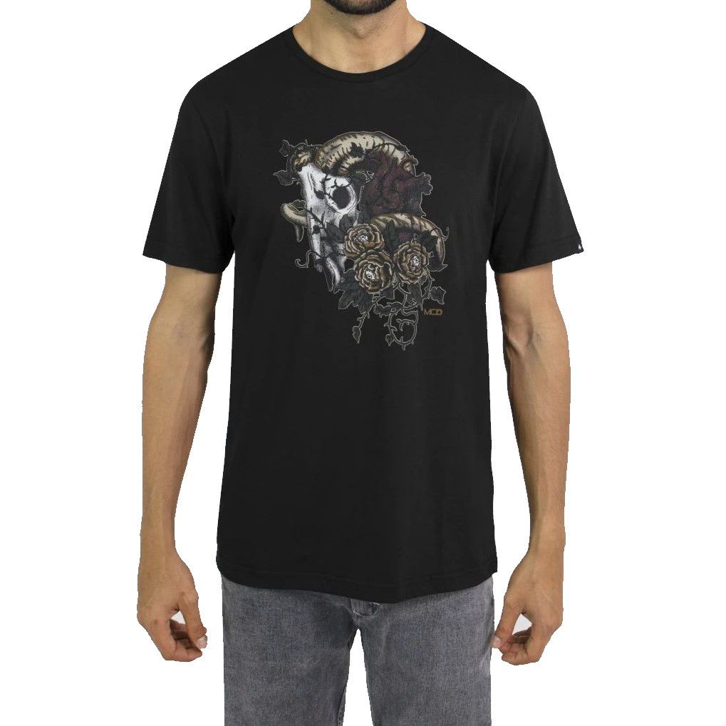 Camiseta MCD com malha penteada fio 30.1, estampa frontal e modelagem regular.