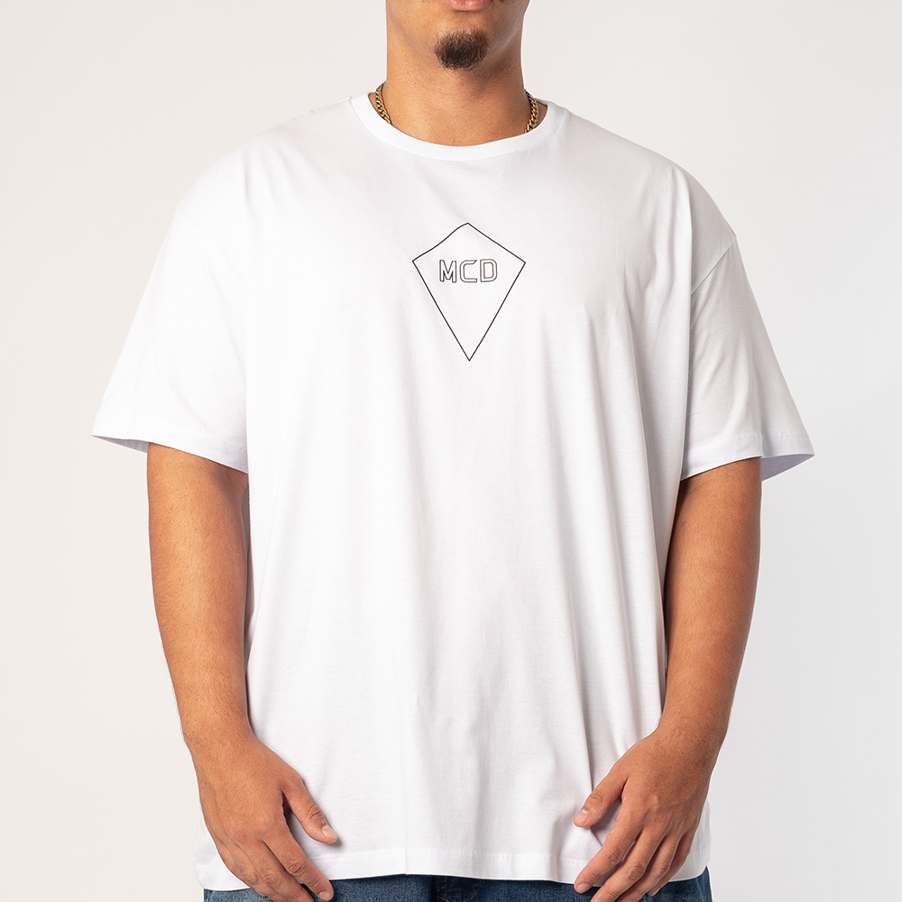 Camiseta Mcd feita em modelagem oversized, logo MCD no peito frontal, reforço de gola, malha 150g e etiquetas personalizadas.