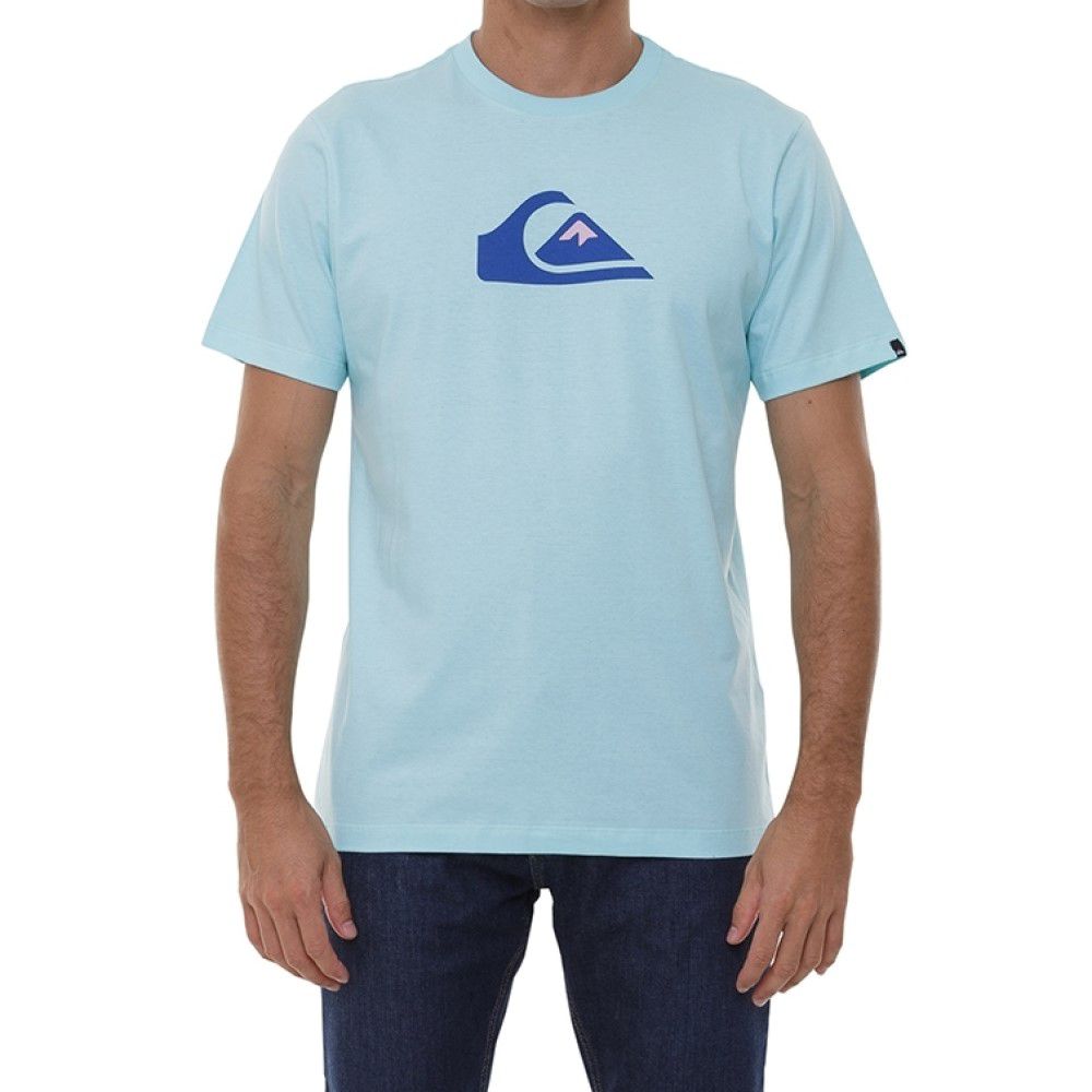 Camiseta básica em meia malha de fio cardado, modelagem regular e silk frontal.