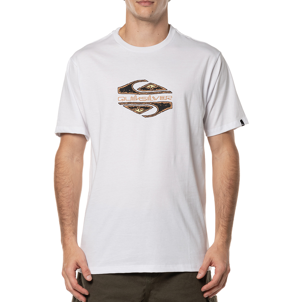 Camiseta Quiksilver com silk 3 cores centralizado na frente e etiquetas personalizadas.
