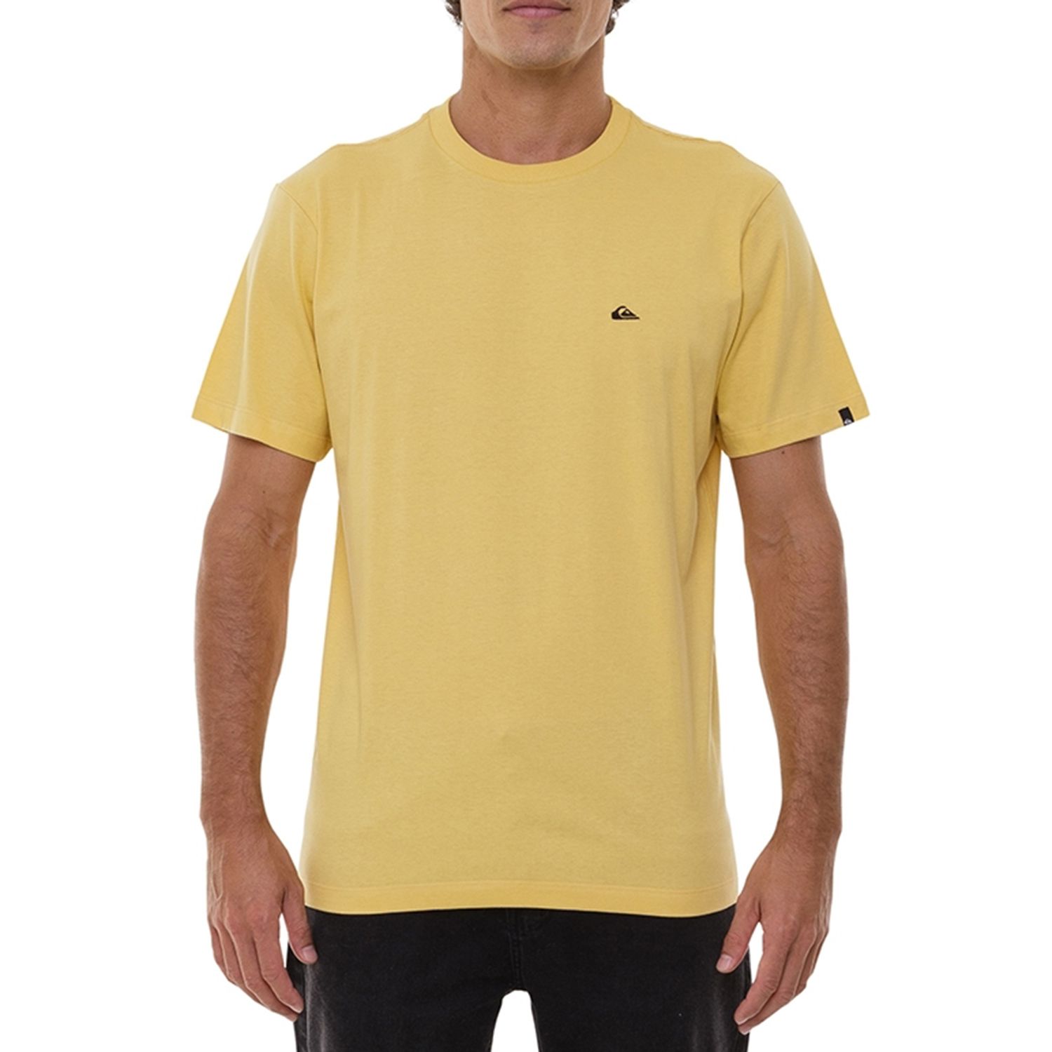 Camiseta básica em meia malha de fio cardado, na modelagem regular e silk frontal.