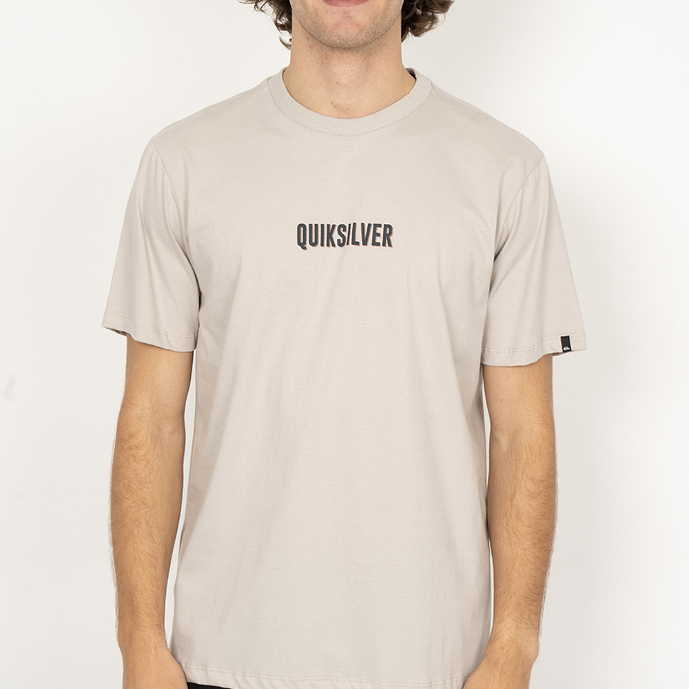 Camiseta QuikSilver feita em modelagem regular, meia malha, estampa aplicada na frente e centro costas e etiqueta da marca aplicada na manga do lado esquerdo de quem veste.
