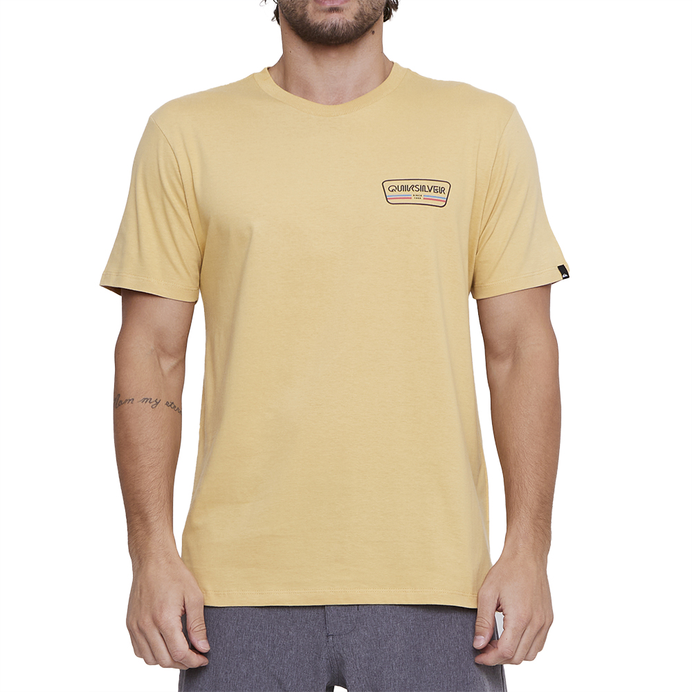 Camiseta QuikSilver feita em modelagem regular fit, meia malha. silk centralizado na frente com 3 cores e etiqueta aplicada na barra da manga esquerda de quem veste.