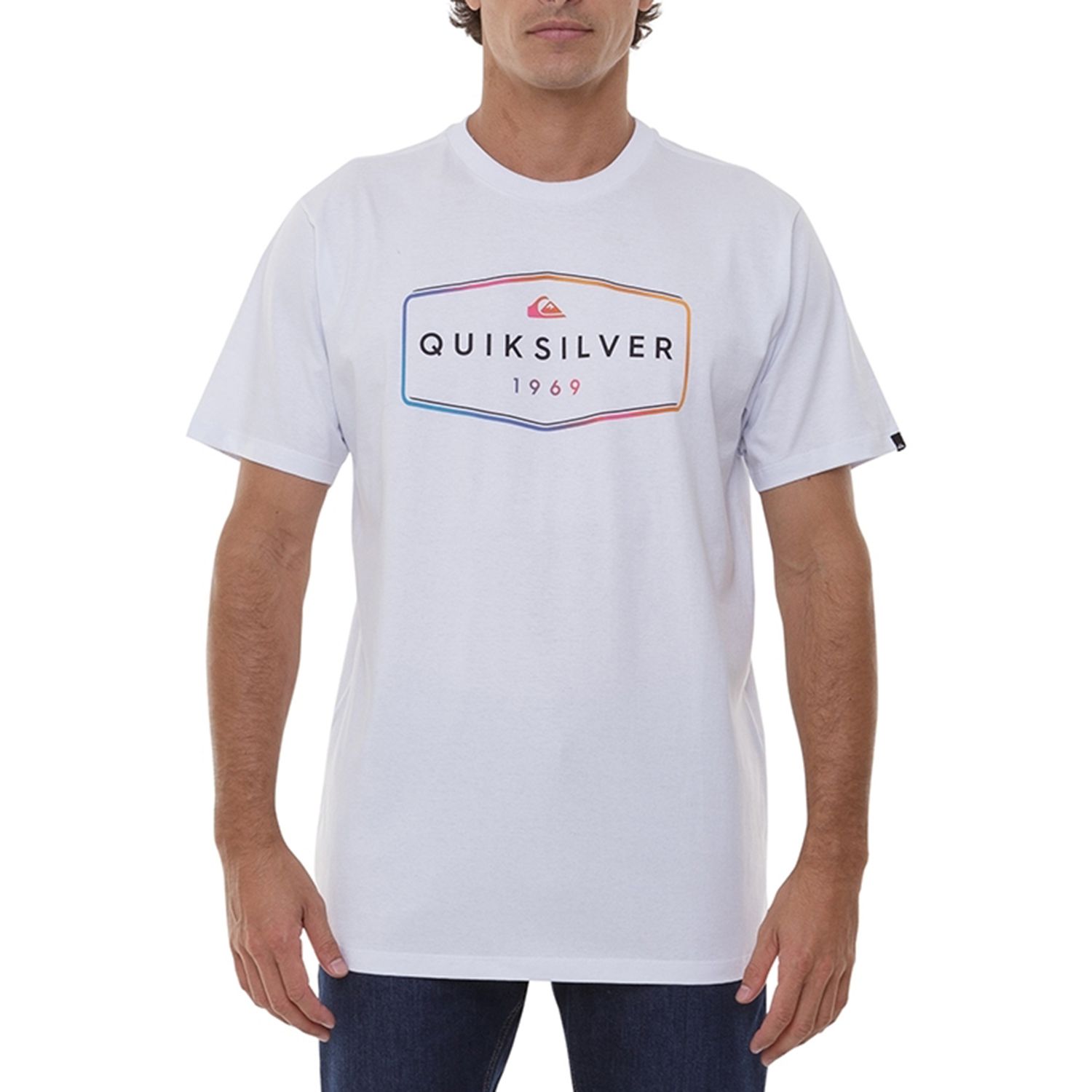 Camiseta Quiksilver básica, em malha de fio penteado, na modelagem regular e silk frontal.