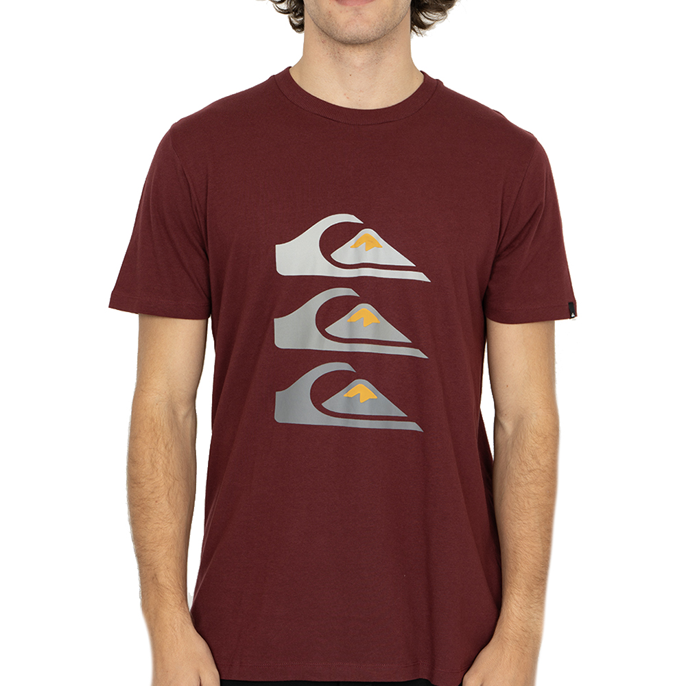Camiseta QuikSilver feita em modelagem regular fit, meia malha, estampa aplicada na frente e centro costas e etiqueta da marca aplicada na manga do lado esquerdo de quem veste.