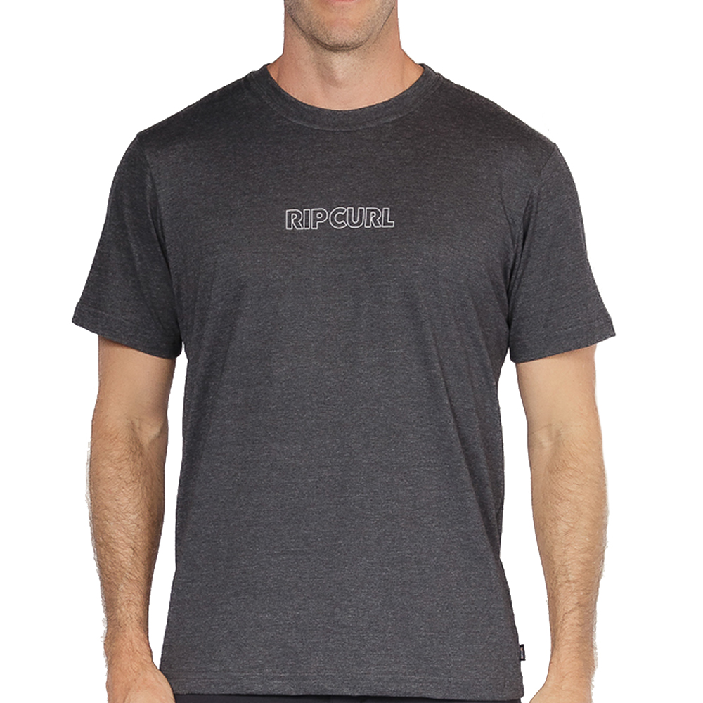 Camiseta Rip Curl feita em modelagem relaxed fit, meia malha mescla, gola redonda, estampa frontal em relevo e etiquetas personalizadas.