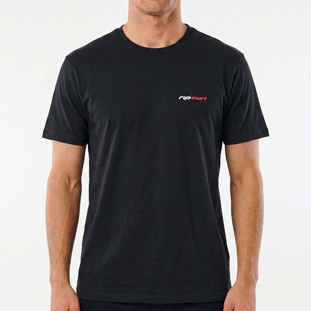 Camiseta Rip Curl feita em modelagem relaxed fit, meia malha 30.1 penteada, silk frente em relevo e etiquetas personalizadas.