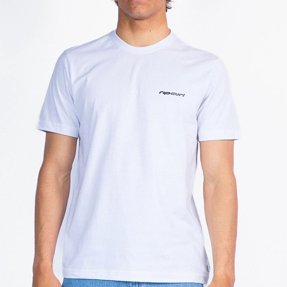 Camiseta Rip Curl feita em modelagem relaxed fit, meia malha 30.1 penteada, gola redonda, estampa frontal em relevo e etiquetas personalizadas.