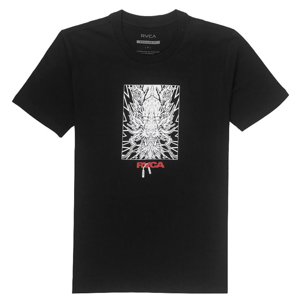 Camiseta RVCA meia malha 30.1 de algodão, coleção ANP OITOOU80, modelagem regular, estampa silk da arte da collab frente e costas.
