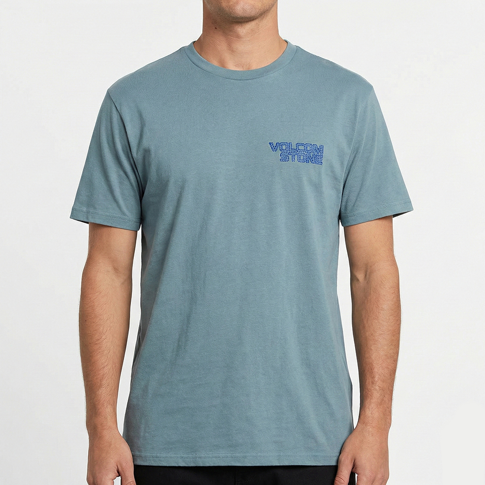 Camiseta Volcom feita em modelagem regular, meia malha 30.1, silk frente e costas, assinatura Volcom na manga, etiqueta interna e viés contrastante.