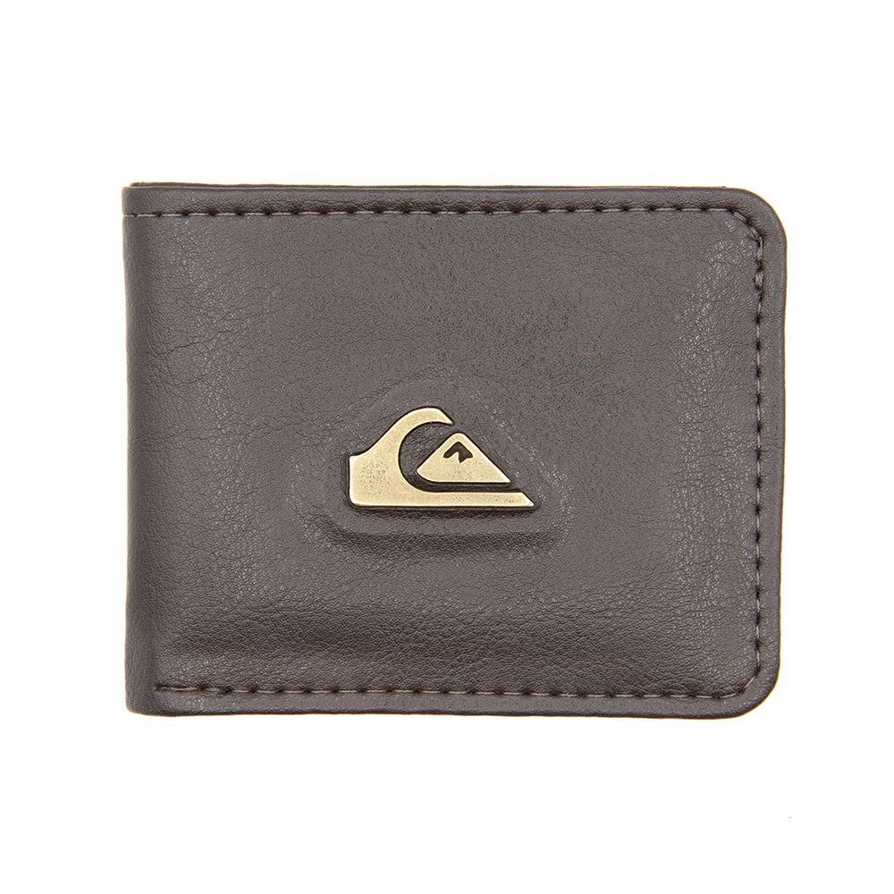 Carteira Quiksilver com corpo em manta de PVC com poliéster, encaixe para cartões na parte interna, placa metalica aplicada centralizada na parte da frente e abertura simples para cartão na parte de trás.