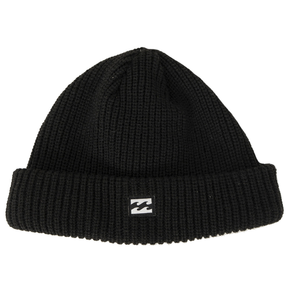 Gorro Billabong tecido em ponto perola 3 cabos no molde clássico e bordado personalizado aplicado no centro da dobra frontal.