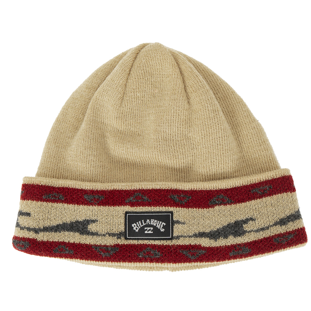 Gorro Billabong tecido em ponto jacquard no molde clássico e etiqueta personalizada aplicada no centro da dobra frontal.