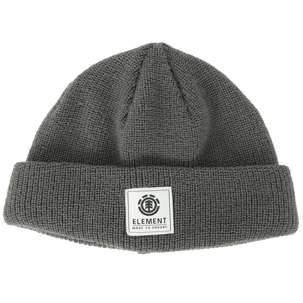 Gorro Element feito em tecido de algodão, etiquetas personalizadas e etiqueta aplicada centralizada na dobra.