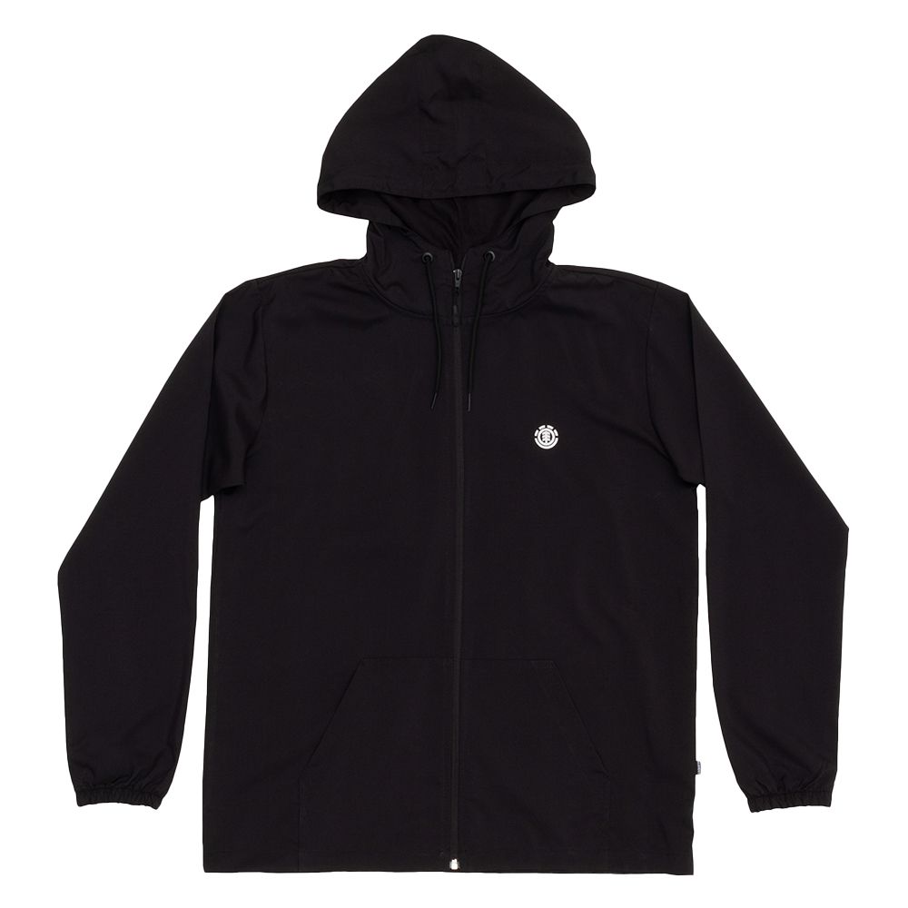 Jaqueta Element corta vento com capuz, bolsos, elástico no punho e etiquetas personalizadas da marca.