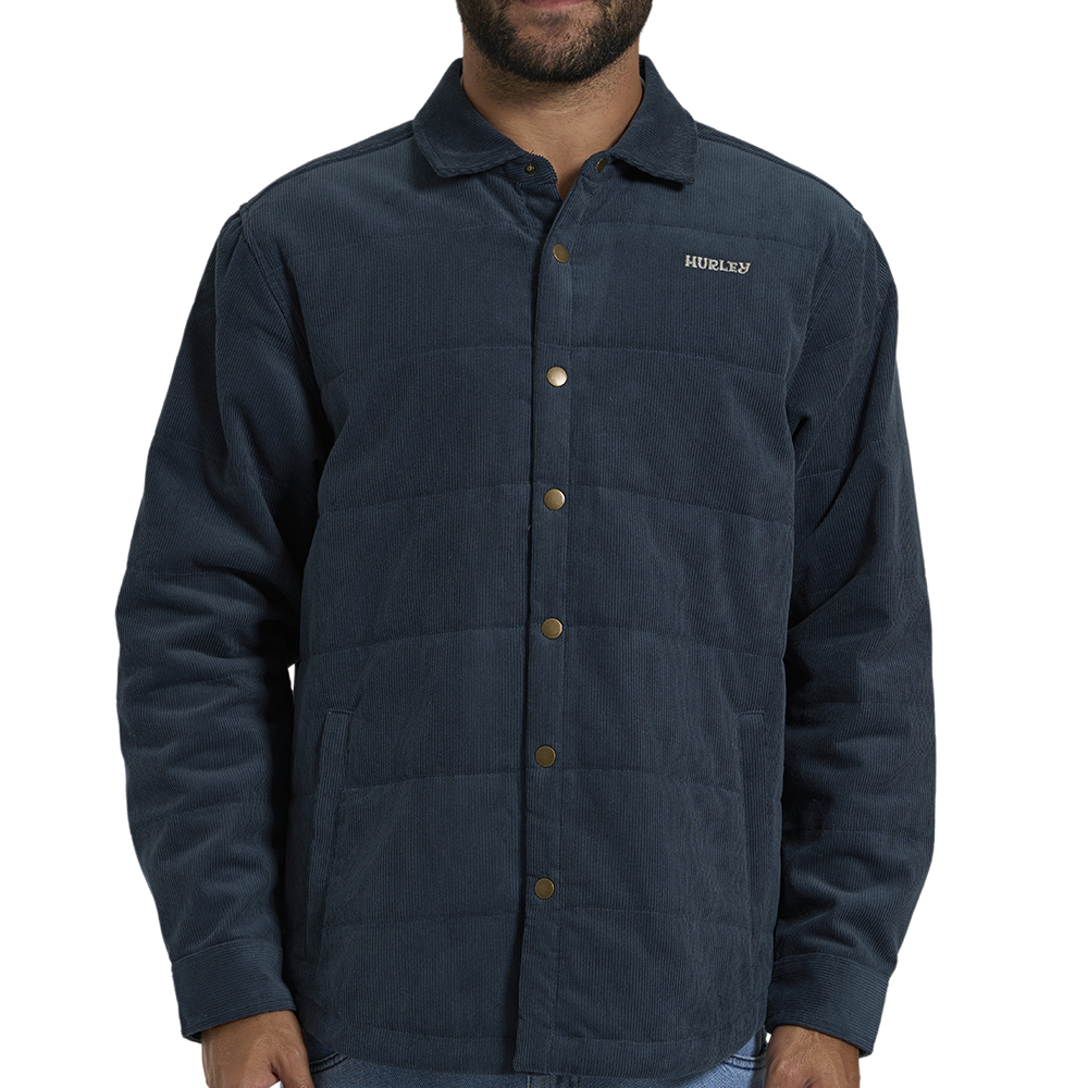 Jaqueta Hurley importada, peça com algodão leve e forro interno de popeline, bordado frontal, bolsos laterais, pregas nas costas e botões com visual envelhecido.