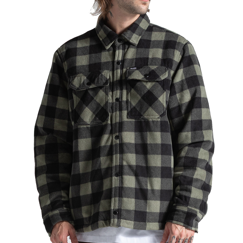 Jaqueta Volcom feita em modelagem regular, etiqueta Volcom frontal, bolsos frontais e laterais, fechamento em botão de pressão, bordado Volcom Stone na manga, botão de pressão no punho da manga, forro interno acolchoado e etiqueta interna.